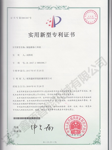 Utility model certificate of heat preservation sliver feeder