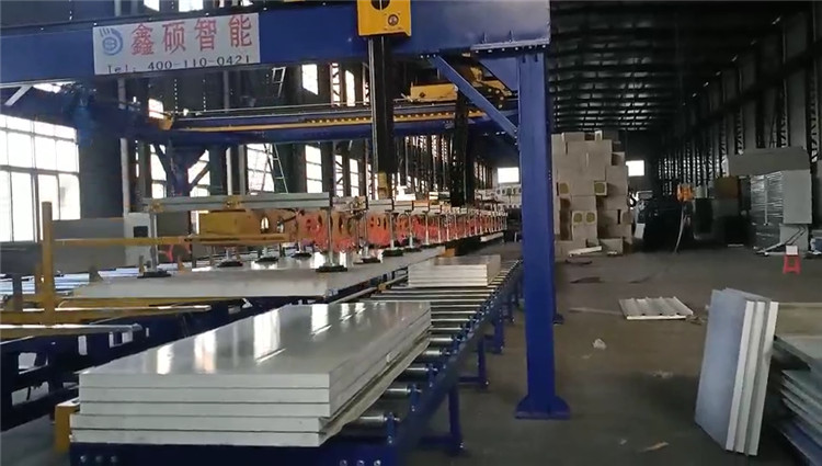 正式亮相!全新一代聚氨酯復合板生產(chǎn)線自動碼垛機投入使用