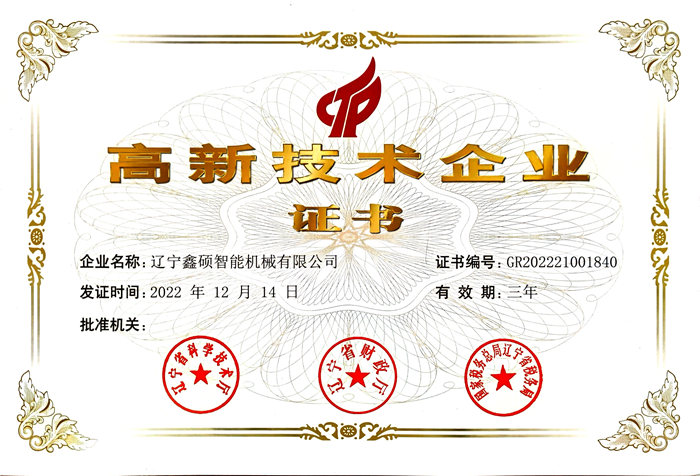 遼寧鑫碩智能機械有限公司正式被認(rèn)定為國家級高新技術(shù)企業(yè)